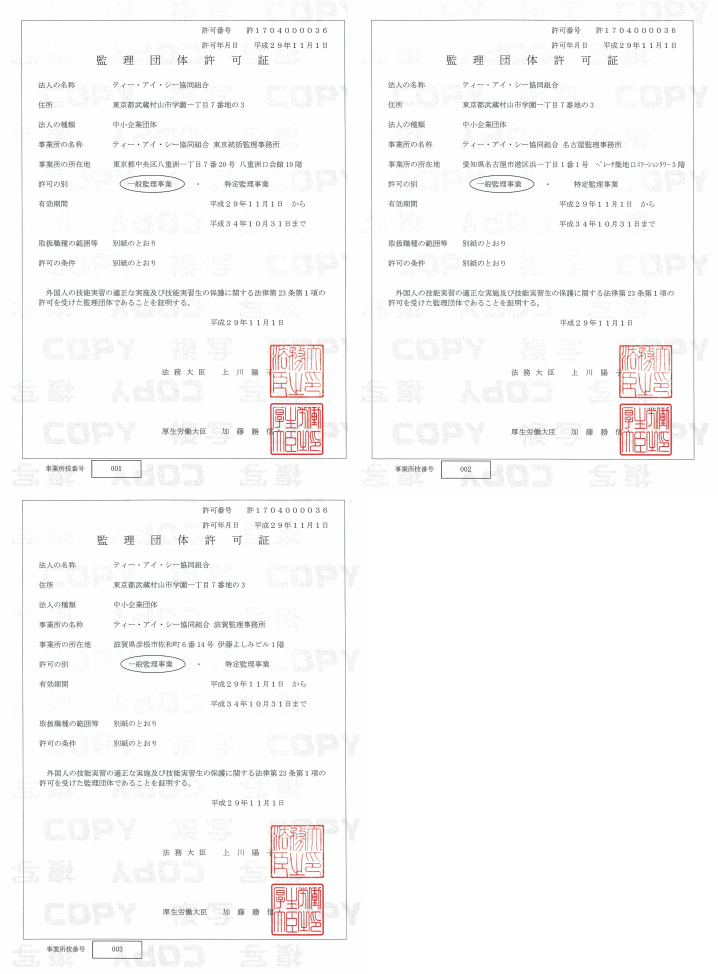 外国人技能実習生受入れ事業において一般監理事業の許可を受けました | 外国人技能実習生受入れ、ETCカード、共同購買ならティー・アイ・シー協同組合へ